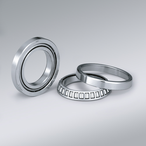 在設(shè)計上,圓錐滾子軸承的內(nèi)圈、外圈的滾道面及滾子的圓錐頂點聚于軸承中心軸上的一點。圓臺型的滾子作為滾動體被組裝在軸承中,由內(nèi)圈的大檔邊引導(dǎo)??沙惺軓较蜉d荷,及單方向的軸向載荷。載荷作用于軸承時會產(chǎn)生軸向分力,因此與角接觸球軸承一樣,一般將2個軸承對置使用,或者必須以雙列軸承等形式使用。在這種情況下,可根據(jù)調(diào)整內(nèi)圈或外圈之間的間距,以設(shè)定合適的內(nèi)部游隙。因為是可分離式,內(nèi)圈和外圈可分別拆卸。作為高負(fù)